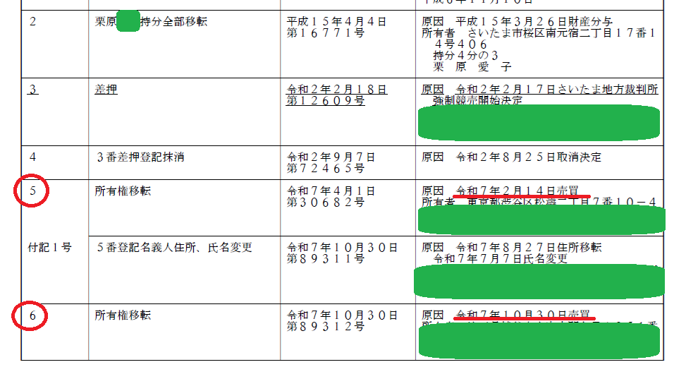 埼玉県浦和市の該当のマンション、既に所有権は移転されている。